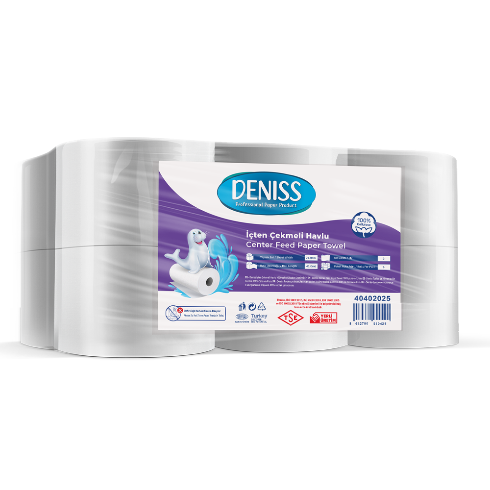 Deniss Paper Towels offer high absorbency and durability. Their strong structure prevents easy tearing, and their special texture is extra soft, making them safe to use even on delicate surfaces.