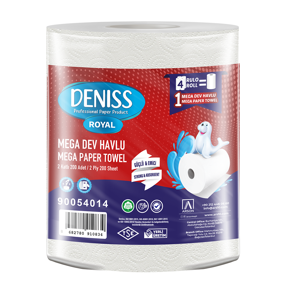 Deniss Paper Towels offer high absorbency and durability. Their strong structure prevents easy tearing, and their special texture is extra soft, making them safe to use even on delicate surfaces.