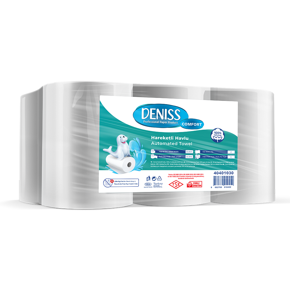 Deniss Kağıt Havlu, yüksek emicilik ve dayanıklılık sunar. Dayanıklı yapısı sayesinde kolayca dağılmaz.Özel dokusu ekstra yumuşaktır ve hassas yüzeylerde bile %100 güvenle kullanabilirsiniz.